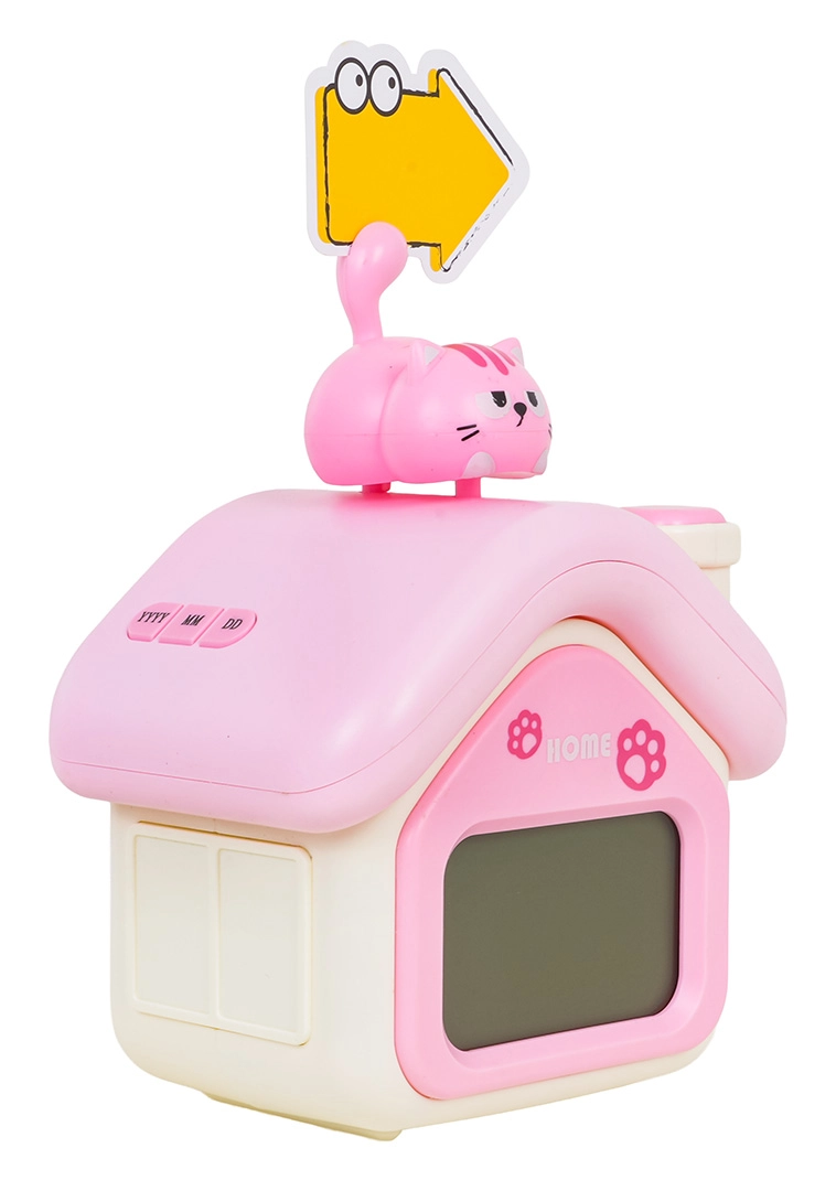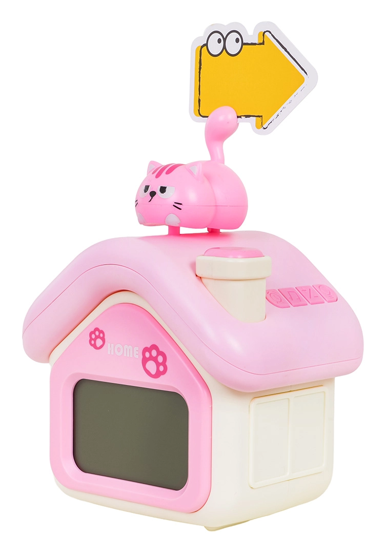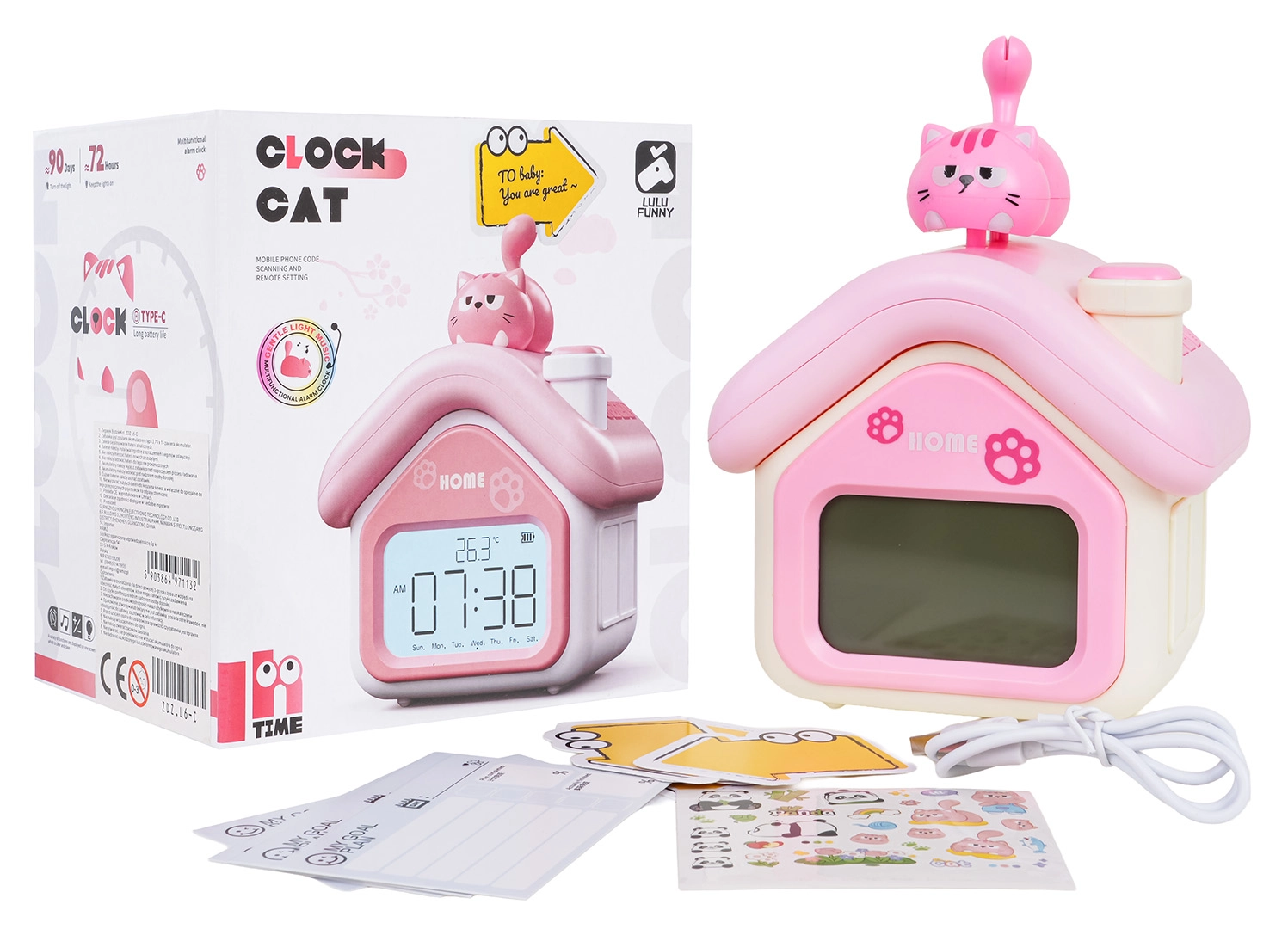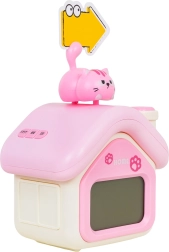 Dette legesyge vækkeur i form af et rosa‑hvidt lille hus med kat vil glæde børn fra 3 år. Det tilbyder et overskueligt digitalt display, blidt natlys, alarm med snooze/udsættelse og temperaturvisning. Det integrerede 3,7 V 1200 mAh batteri oplades via en moderne USB‑C‑stik, så du slipper for batteriskift.