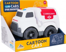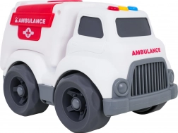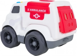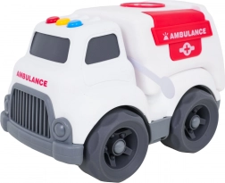 Den søde ambulance til børn fra 18 måneder byder på masser af sjov takket være lys- og lydeffekter, åbnbar bagdør og en sikker, blødere udformning uden skarpe kanter. På taget finder du farvede knapper, der aktiverer lyde for start, kørsel, bakning samt en glad melodi. Batterier er inkluderet i pakken, så legen kan begynde med det samme.