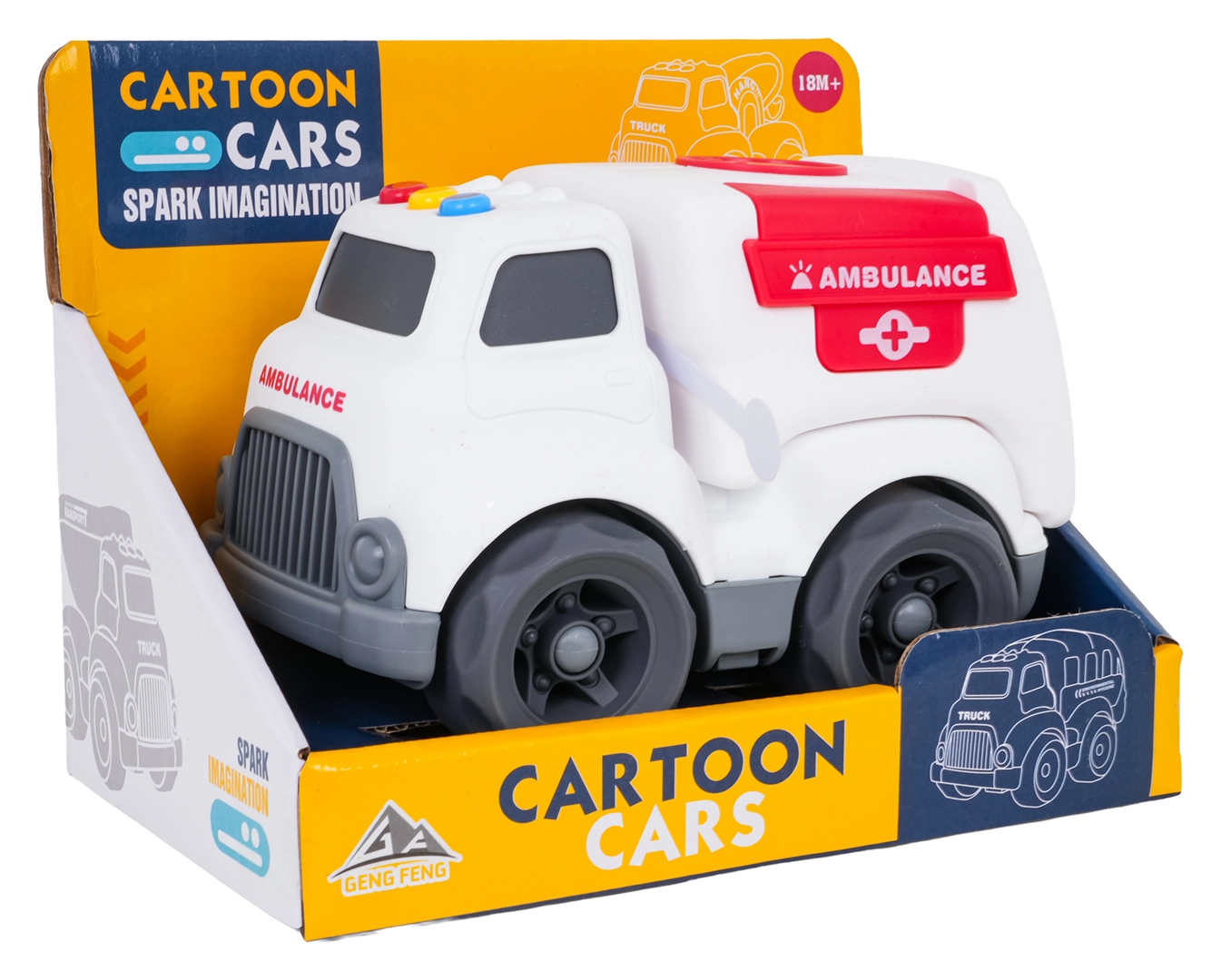 På taget af bilen er der knapper med lys og lyd, som ved tryk aktiverer realistiske effekter – motorstart, kørsel, bakning og en glad melodi, mens lygterne blinker. Den bageste dør kan åbnes, hvilket stimulerer fantasien og rollen som lille redder.