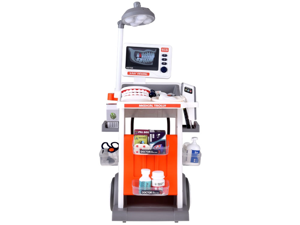 Forvandl børneværelset til en lille klinik. Det interaktive rullebord med “X-Ray/ECG”-monitor, lampe, rum og drejelige hjul tilbyder autentisk rolleleg som læge og tandlæge. Børn kan lytte til hjertet, “røntgenfotografere” patienten, tjekke tænder på kæbemodellen og på en sikker måde prøve almindelige procedurer. Realistiske lys- og lydeffekter forstærker oplevelsen og motiverer til at udforske.