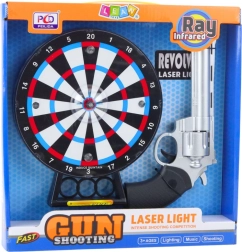 Leder du efter et sjovt og sikkert skydespil til børn? Denne laserrevolver med målskive udvikler præcision, koordination, koncentration og reflekser. Takket være elektronisk registrering af træf er der ikke brug for pile eller kugler – ren leg uden rod.