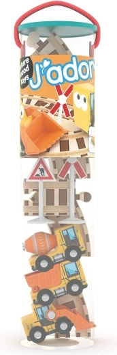 Opdag et sjovt trælegesæt med togbane og byggemaskiner, der stimulerer fantasi, finmotorik og kreativ leg. Fremstillet af miljøvenligt, bæredygtigt træ uden kemikalier. Ideelt til børn fra 18 måneder.