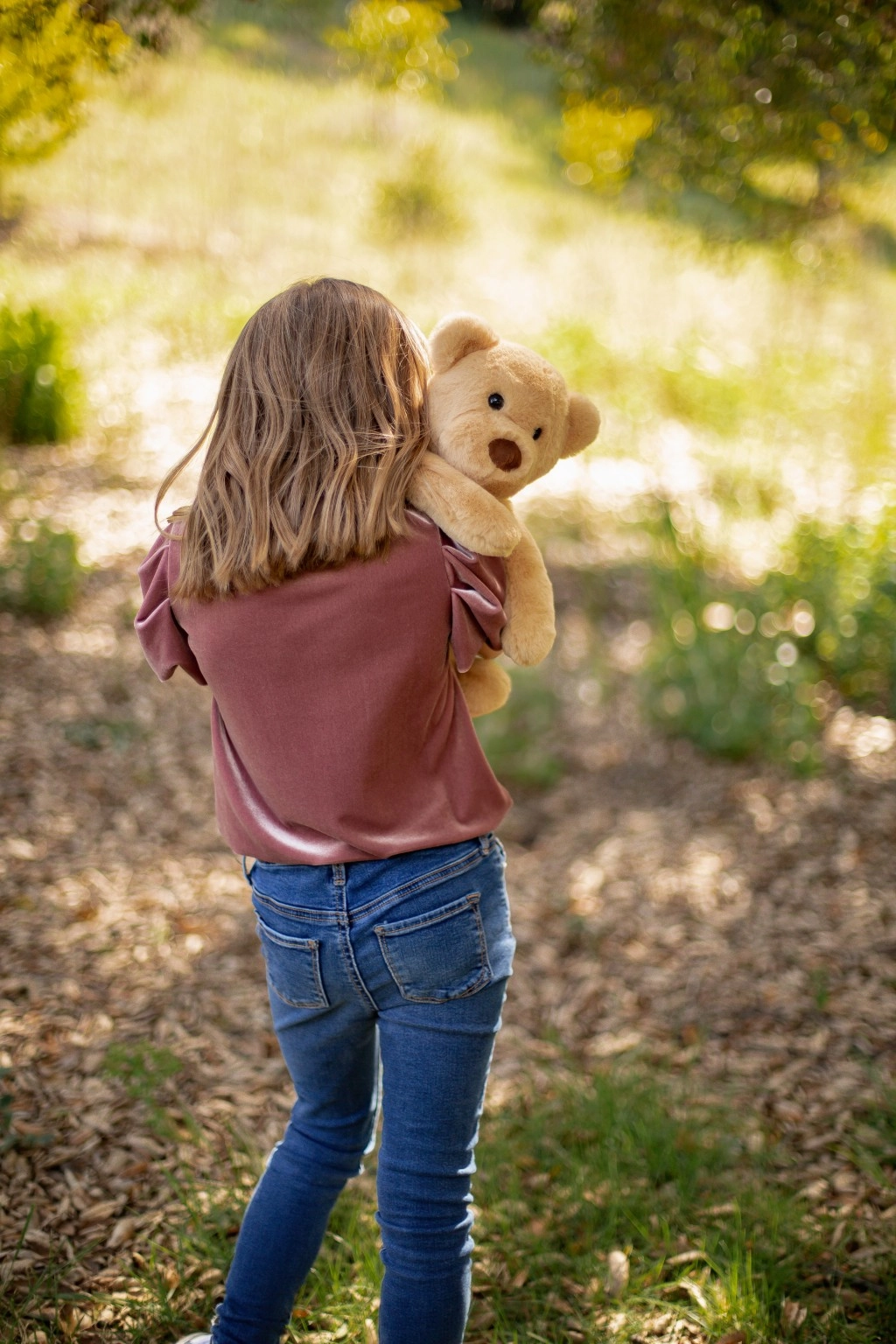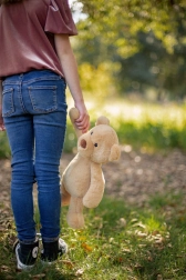 Blød plys og en krammevenlig fyld giver en behagelig følelse og komfort ved hvert kram – ideel til indsovning og afslapning.
