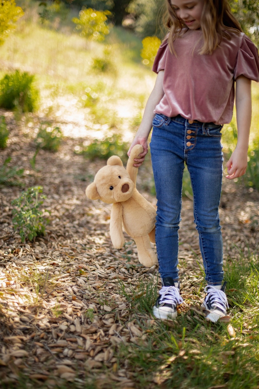Barnet kan nemt bære bjørnen og tage den med overalt – på gåtur, udflugt og i børnehave.