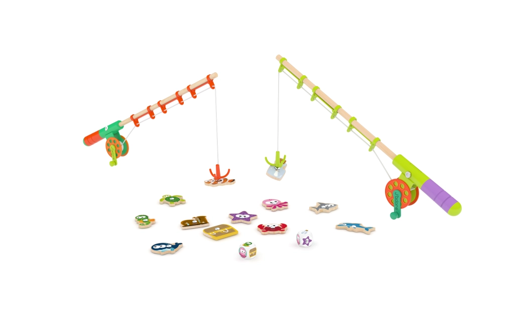 Det træmagentiske fiskespil er et populært pædagogisk redskab og legetøj i ét. Med den magnetiske stang fanger børn farverige fisk, skelner mellem farver og øver greb. Takket være solidt træ og glat slebne kanter er spillet sikkert og behageligt at røre ved.