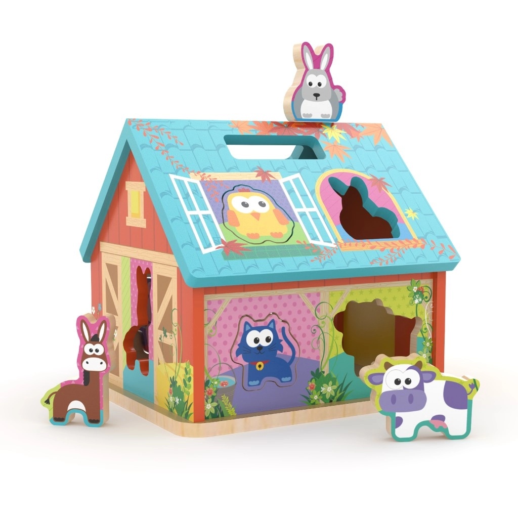 Hver del forestiller et sødt bondegårdsdyr og passer i det tilsvarende hul. Børn øver sig i at genkende former og i logisk tænkning på en naturlig og sjov måde.