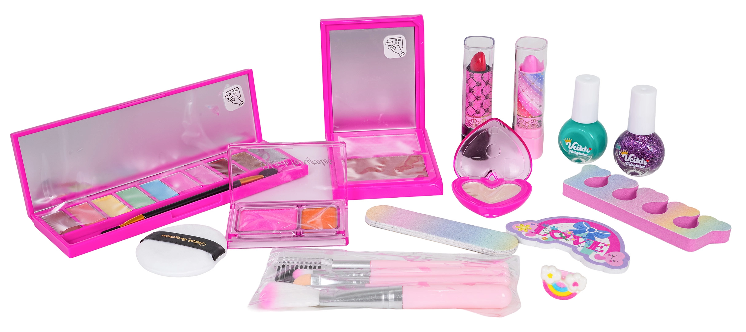 Sættet er fremstillet med fokus på detaljer; “kosmetik” er skånsom til børns leg og nem at vaske af (kun vand og sæbe). Det rige tilbehør understøtter finmotorik, kreativitet og rolleleg som skønhedssalon eller prinsessebal.