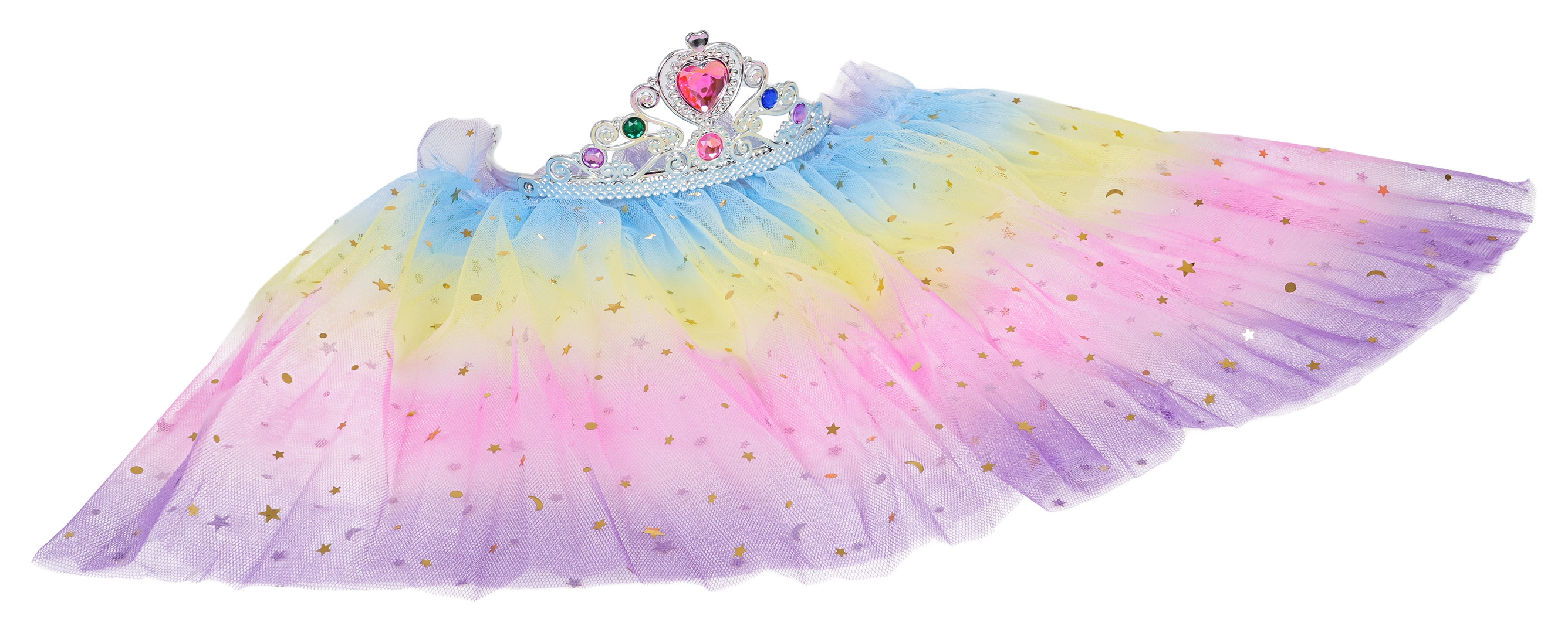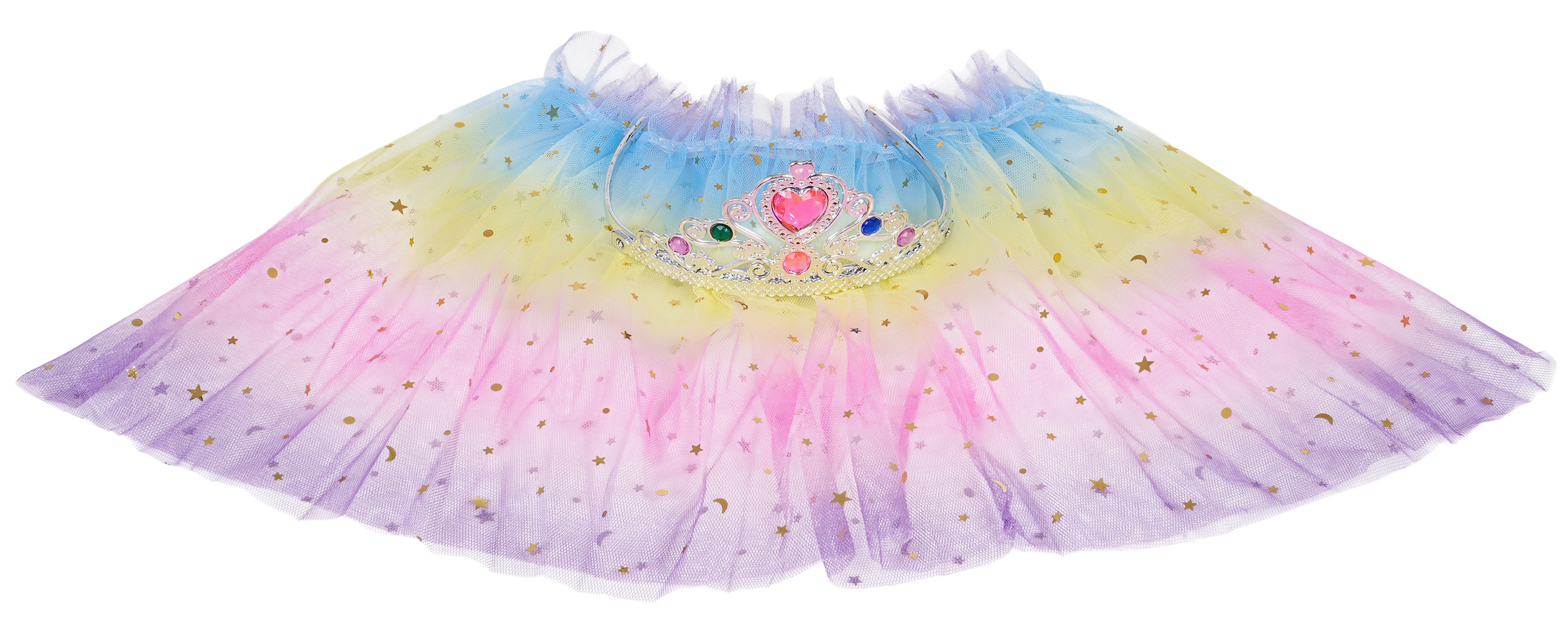 Den lette tyl-tutu med stjerner og den glitrende krone skaber et fortryllende outfit til bal, fødselsdag eller daglig udklædning.