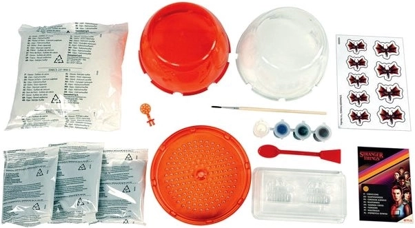 I kassen finder du alt, hvad du behøver til både skabelse og dyrkning – fra beholder og frø til jord, gips, forme og temperafarver. Trin for trin skaber du en original dekoration inspireret af Upside Down-universet, ideel til seriens fans og alle, der elsker kreative projekter.