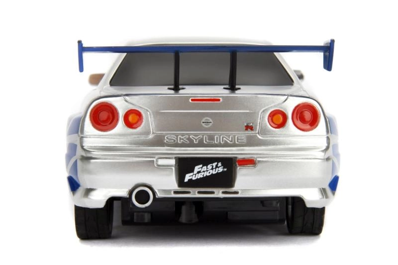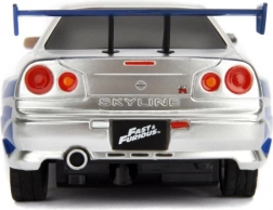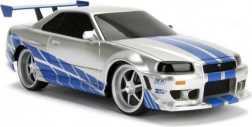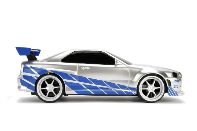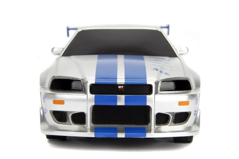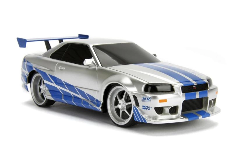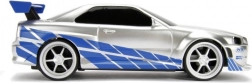 Det detaljerede sølv‑blå look med decals, spoiler og sportsfælge vil begejstre både Fast & Furious‑fans og modelbilsamlere.