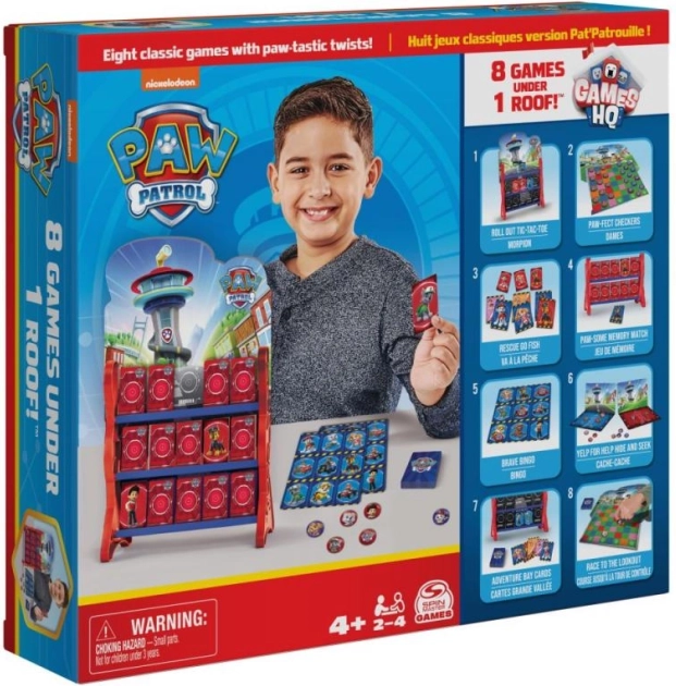 Nyd familiehygge med et sæt på otte klassiske spil i et unikt 3D-design af PAW PATROL-hovedkvarteret. Her finder du bingo, tre på stribe, dame og andre enkle spil for 2–4 spillere fra 4 år, som udvikler logik, koncentration og teamwork.