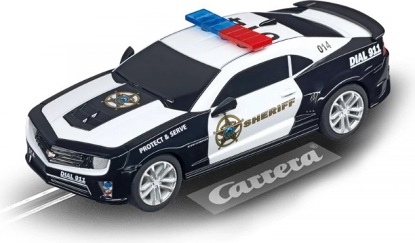 Modellen af politibilen CHEVROLET Camaro Sheriff bringer en autentisk indsatsstemning til din racerbane. Takket være den høje kvalitet og smarte tekniske løsninger får du en jævn kørsel, sikkert sporhold og effektfulde lyssignaler.