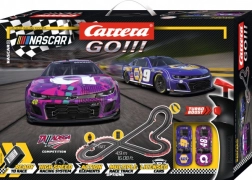 Start løbene som på den store oval TALLADEGA! Carrera GO-racerbane i skala 1:43 tilbyder et actionfyldt layout med lodret væg, krydskørsel og en præcis mekanisk omgangstæller. De to licenserede NASCAR-biler Chevrolet Camaro Next Gen (nr. 9 NAPA og nr. 48 Ally) holder sporet selv i hurtige passager takket være magneter og dobbelte børster.