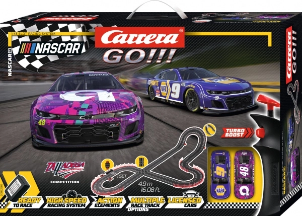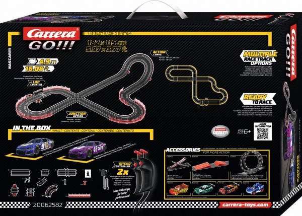 Oplev spændingen fra NASCAR-løb derhjemme med Carrera GO-racerbane på 4,9 m. Sættet indeholder to detaljerede biler Chevrolet Camaro Next Gen, dynamiske elementer som en lodret væg, en krydskørsel og en omgangstæller. Takket være turbo-controllere, magneter og dobbelt børster er kørslen hurtig, jævn og med fremragende vejgreb – ideel underholdning for børn fra 6 år og voksne.