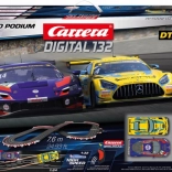 Racersættet Carrera DIGITAL 132 ”Pole to Podium” byder på en 7,6 m lang bane, detaljerede biler FERRARI 296 GT3 og MERCEDES-AMG GT3 Evo, trådløse controllere WIRELESS 2.0 og mulighed for overhaling inklusive digitale funktioner som tankning, racesimulation og kørsel mod ghost car. Fantastisk underholdning for op til 6 kørere fra 8 år.