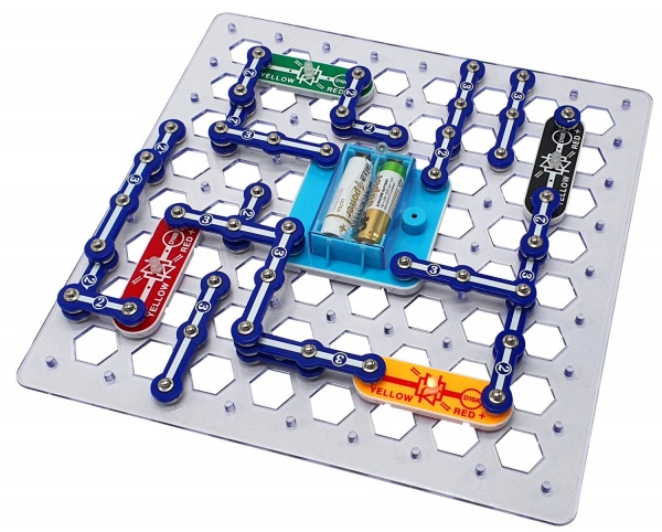 Farvekodede komponenter og et overskueligt gitter gør det intuitivt at samle elektriske baner – ideelt for børn fra 8 år og voksne.