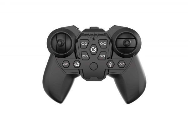 Ergonomisk controller med to joysticks og dedikerede knapper til lys, lyde og demotilstand giver præcis og intuitiv styring.