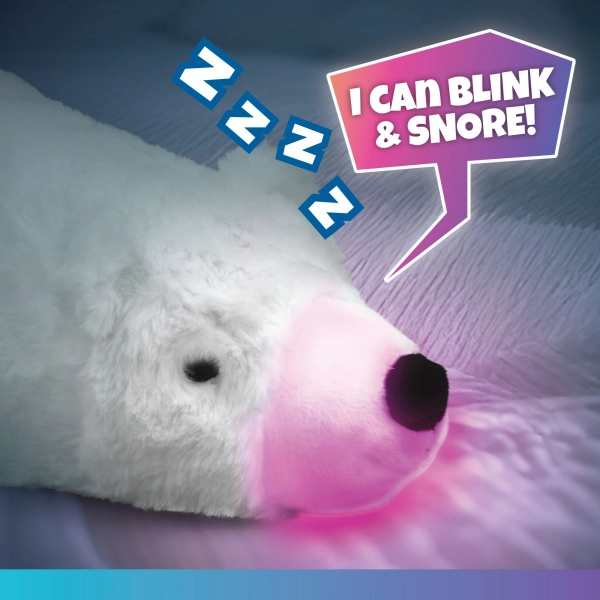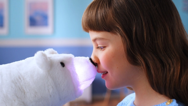Denne bløde isbjørne-bamse bliver levende, når du rører dens hoved. Den reagerer med bevægelse i øjne og snude, ledsaget af farvet lys og lyde, som hjælper børn med at forstå følelser og udvikle fantasi. En skøn legekammerat om dagen og en natven til rolig indsovning.