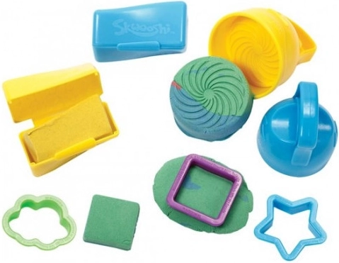 Skwooshi-sæt med mixer: let, elastisk og aldrig udtørrende modellermasse. Hypoallergen, glutenfri. 2×58 g, mixer og 3 forme til kreativ leg.