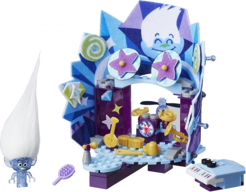 Den roterende scene med mikrofon gør det muligt at simulere en ægte optræden, mens den medfølgende børste kan bruges til at style frisuren på den glitrende stjernetrol. Med 77 dele kan børn nemt bygge scenen, tilføje musikinstrumenter og tematiske elementer og genskabe yndlingsøjeblikke fra filmen eller finde på deres egne historier.