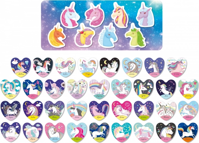 Unicorn Magisk hjerte er et fortryllende samlesæt, der vil begejstre alle elskere af enhjørninger og farverige verdener. Når du åbner det praktiske plastikhjerte, venter der 7 originale kort med figurer fra Unicorn-universet. Med en kollektion på mere end 40 kort er det en fornøjelse at opdage nye motiver, udfylde albummet og bytte kort med venner.