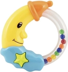 Den søde rangle i form af en måne glæder enhver baby lige fra fødslen. Takket være den lette plastkonstruktion er den nem at holde, og ved bevægelse udsender den behagelige lyde, som understøtter sansning og beroliger. Let plast, behagelig lyd, to farvevarianter, egnet fra 0 måneder.