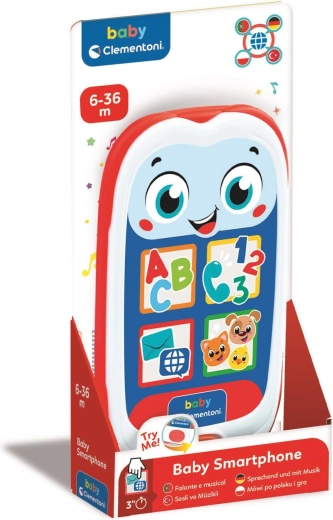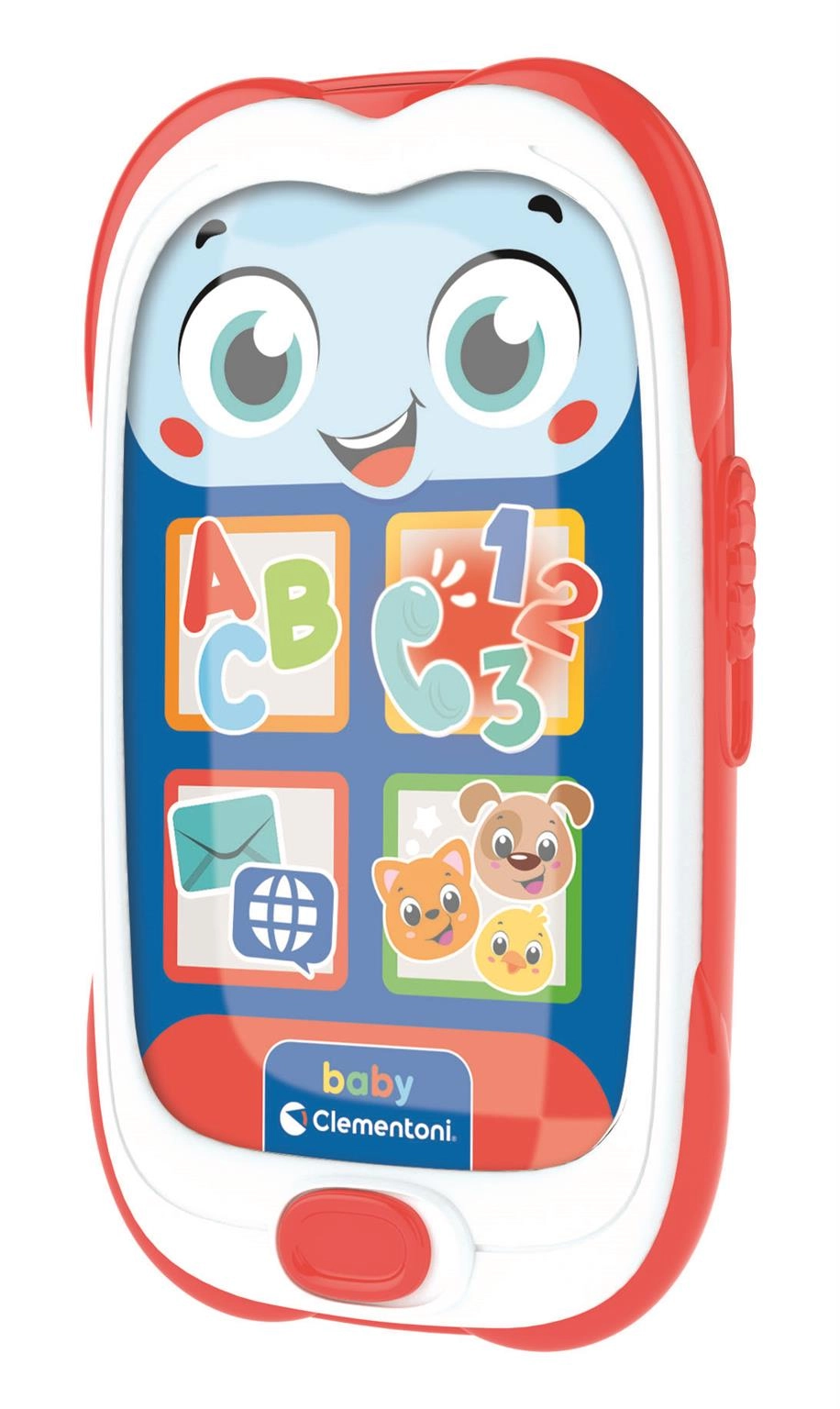 Interaktiv talende smartphone til de mindste fra CLEMENTONI udvikler sprog, finmotorik og sanseopfattelse. Med 4 bagbelyste knapper, 4 sange og 5 remser lærer børn fra 6 til 36 måneder på legende vis de første bogstaver og tal samt dyrelyde. En kvalitets- og sikker legetøj produceret i Italien, batteridrevet, ideel til nysgerrige børn.