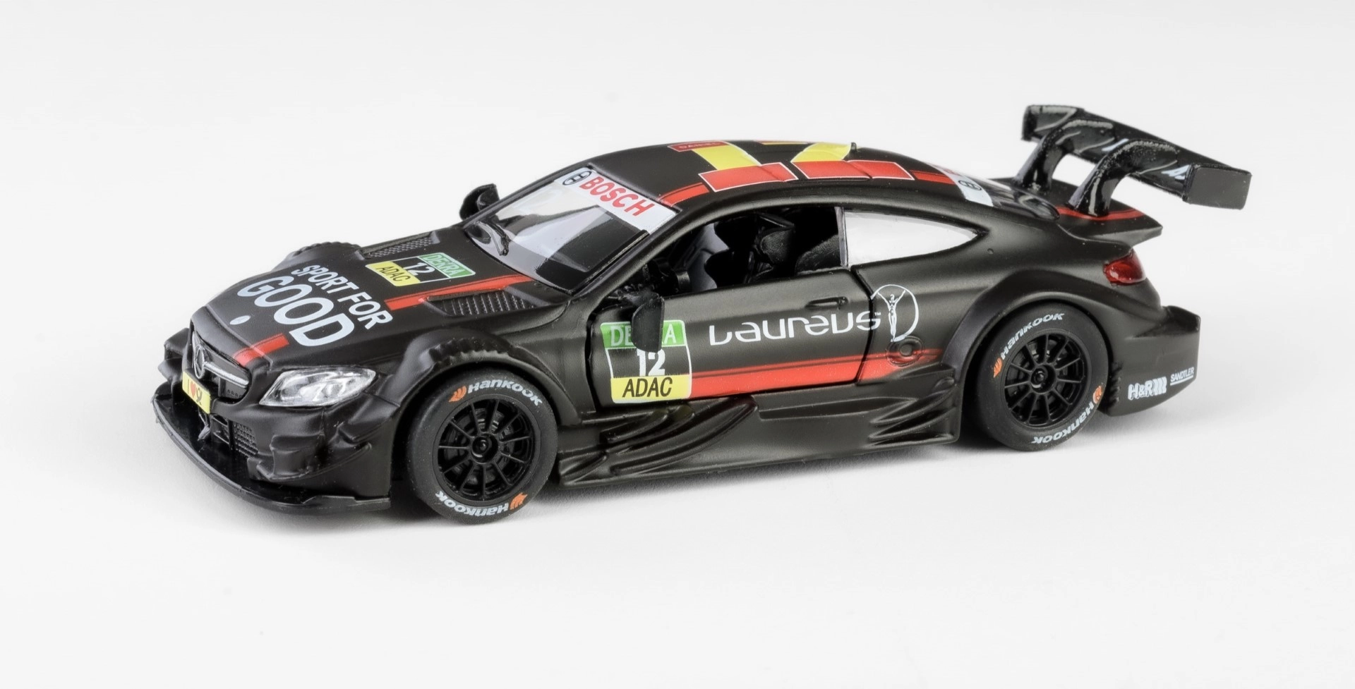 Nyd en autentisk oplevelse med modellen af racerbilen MERCEDES-AMG C 63 DTM i elegant sort. Skala 1:43 og et detaljeret interiør og eksteriør vil glæde enhver motorsportsfan. Takket være pull-back-funktionen kører modellen nemt fremad efter at være trukket tilbage, og åbningsbare sidedøre øger realismen både i leg og ved udstilling.