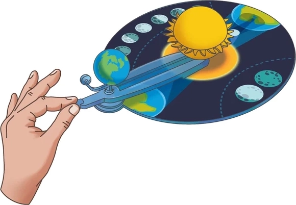 - Interaktiv model – manuel omløb af Jorden og Månen giver en konkret forståelse af astronomi.