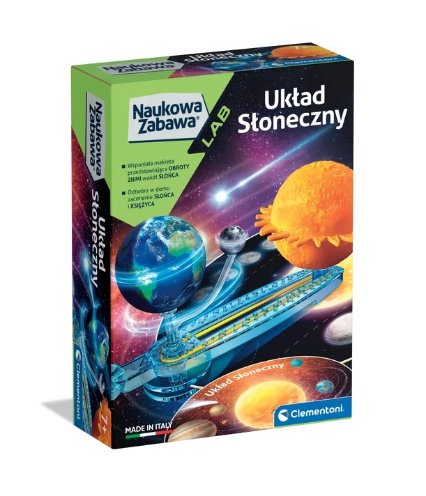 Udforsk rummet på nært hold med en interaktiv model af solsystemet fra Clementoni. Børn kan manuelt dreje Jorden omkring Solen og Månen omkring Jorden og med egne øjne se, hvordan månens faser, årstiderne og formørkelser opstår. Takket være den overskuelige vejledning er alt nemt, sjovt og sikkert.