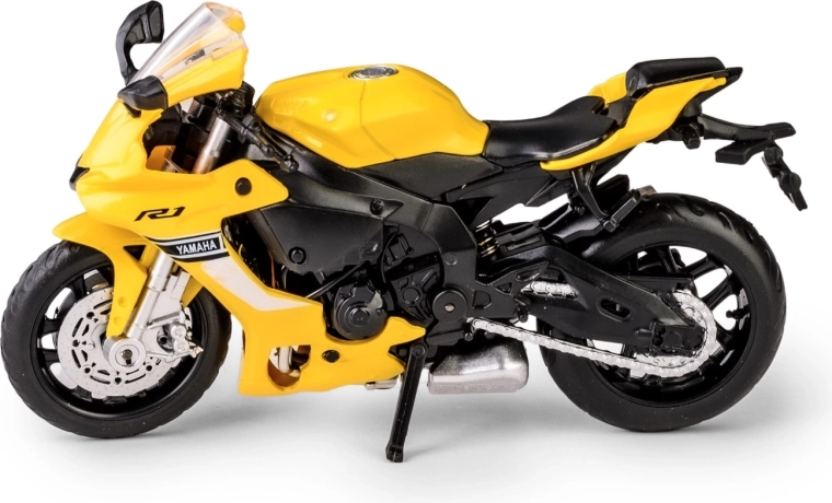 Detajleret samlermodel af motorcyklen Yamaha YZF‑R1 i skala 1:18 vil glæde både børn og voksne. Den holdbare metalkrop med plastdetaljer, gummidæk for et realistisk udseende samt funktionelle elementer som drejelige hjul, bevægeligt styr og udklappelig sidestøttefod gør modellen perfekt til både udstilling og leg.