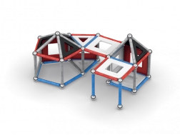 Trekantede og firkantede rammer gør det muligt at skabe mange forskellige former og konstruktioner. Lette, men robuste dele understøtter fantasi og eksperimentering.