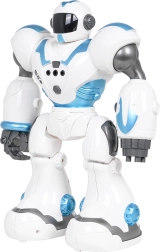 En sjov og smart ledsager til børn fra 3 år: den multifunktionelle robot U-ICTORY i blå. Den kan gå, dreje, bevæge armene, danse, afspille melodier, fortælle historier og endda stille spørgsmål og svare. Betjenes med 2,4 GHz fjernbetjening, er programmerbar og har bagbelyste øjne. Et genopladeligt 3,7 V batteri medfølger.