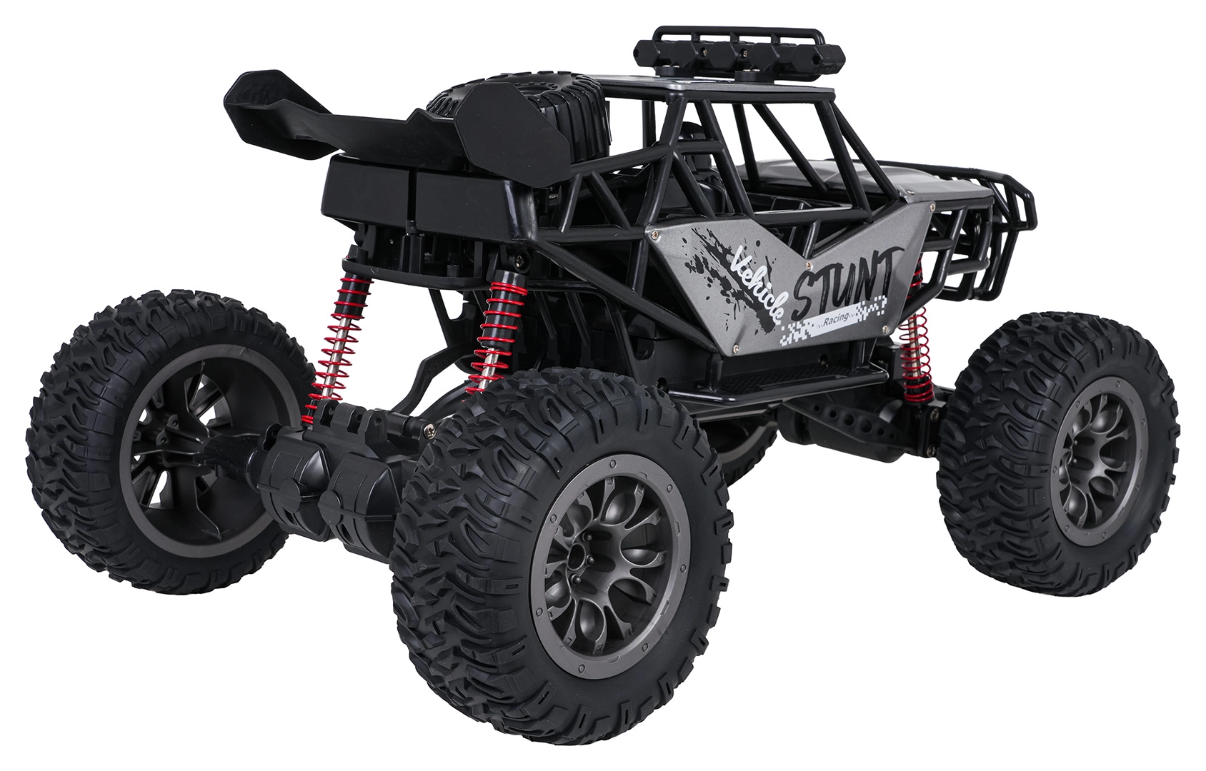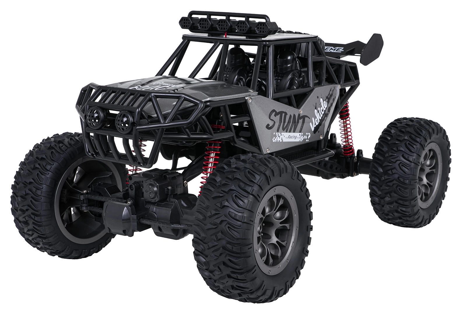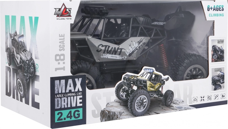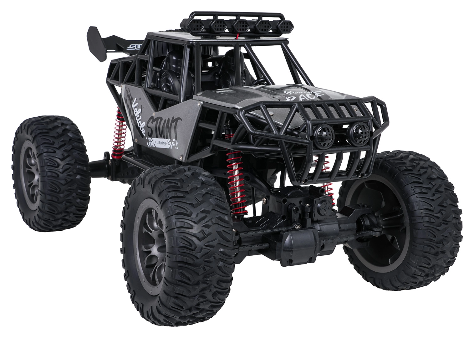 Nyd actionfyldt terrænkørsel med en RC crawler i skala 1:8. Metalkarrosseri og fjederaffjedring giver høj holdbarhed, mens store, skridsikre hjul med dybt mønster sikrer fremragende greb på grus, græs og sand. 2,4 GHz controlleren giver jævn styring uden forstyrrelser og rækkevidde op til 50 meter.