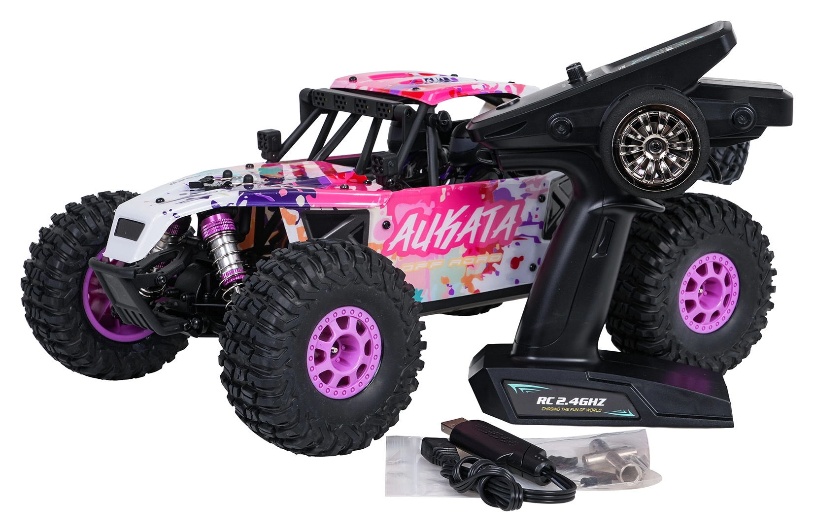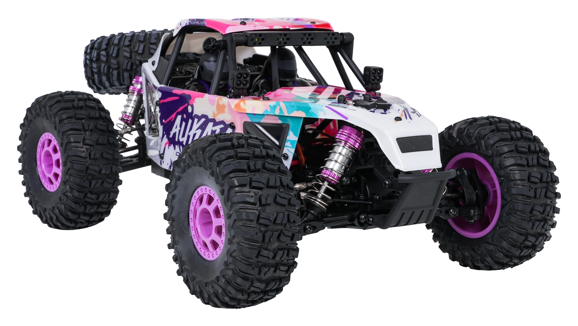 RC crawler Alikata er designet til dynamisk kørsel i terræn. Metalkarrosseri og chassis, optimeret kraftoverførsel og et kraftigt 7,4 V batteri forener hastighed med holdbarhed. Store skridsikre dæk, lang affjedringsvandring og justerbare støddæmpere i aluminium giver sikkerhed på grus, ler og sten.