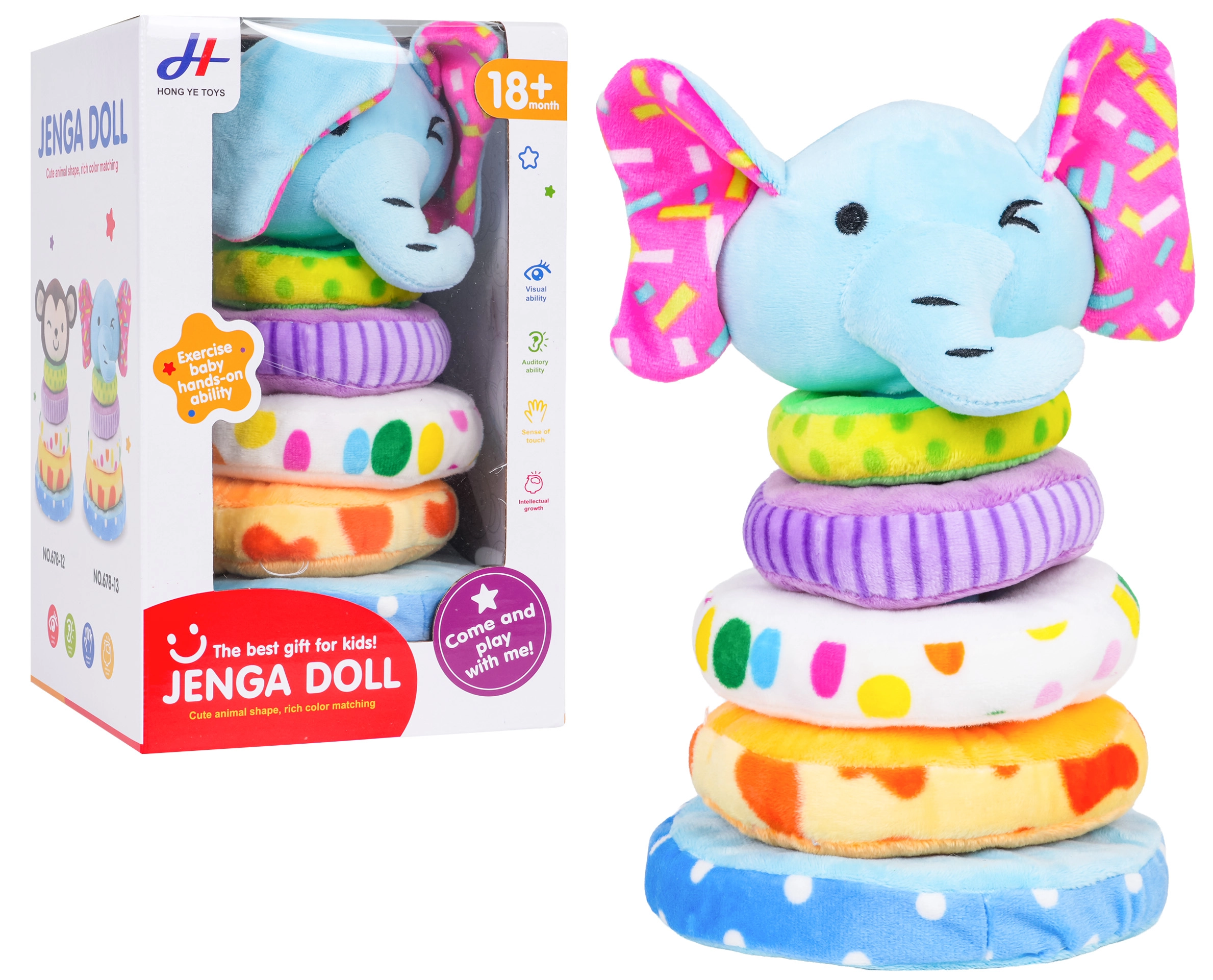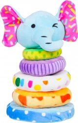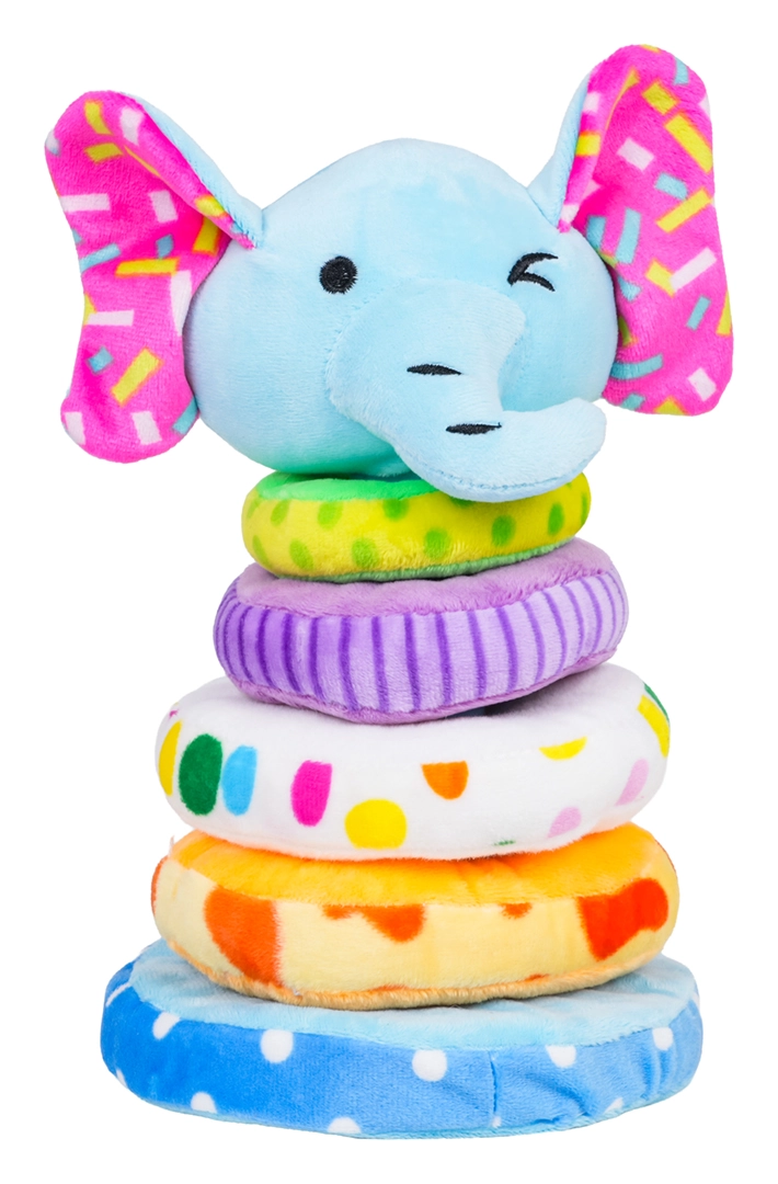 Denne bløde plyspyramide med elefantform er et fantastisk første læringslegetøj. Børn øver at sætte 4 ringe i forskellige størrelser på den bløde pind og lærer at sortere efter størrelse og farve. Pivelyden i elefanthovedet belønner hvert tryk med en munter lyd og understøtter den auditive sans.