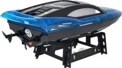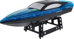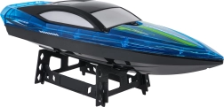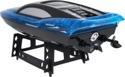 Denne blå RC motorbåd er designet til hurtig og præcis sejlads på vandet. Kvalitetsmaterialer og et aerodynamisk skrog giver fremragende køreegenskaber, mens LED-lys øger synligheden og giver et attraktivt udseende ved aftensejlads. 2,4 GHz-styring tilbyder pålidelig rækkevidde uden interferens, så du kan race med flere både samtidig.