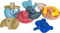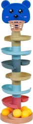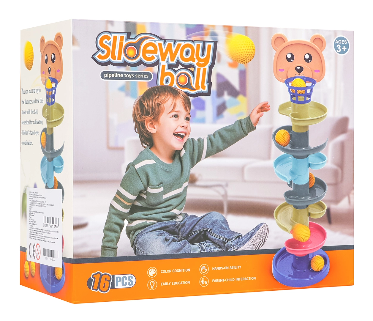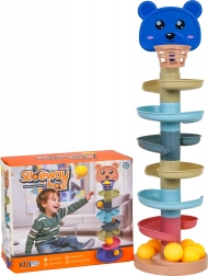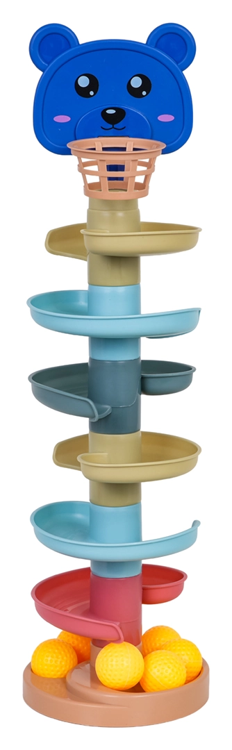 Denne farverige kuglebane med bamsehoved og øverste kurv begejstrer små byggere og nysgerrige hænder. Delene klikkes let sammen, byg et tårn med op til 6 etager, og se boldene suse ned ad spiralerne til basen. Jo højere tårn, desto større udfordring at ramme kurven – en skøn leg, der udvikler tålmodighed og koncentration.