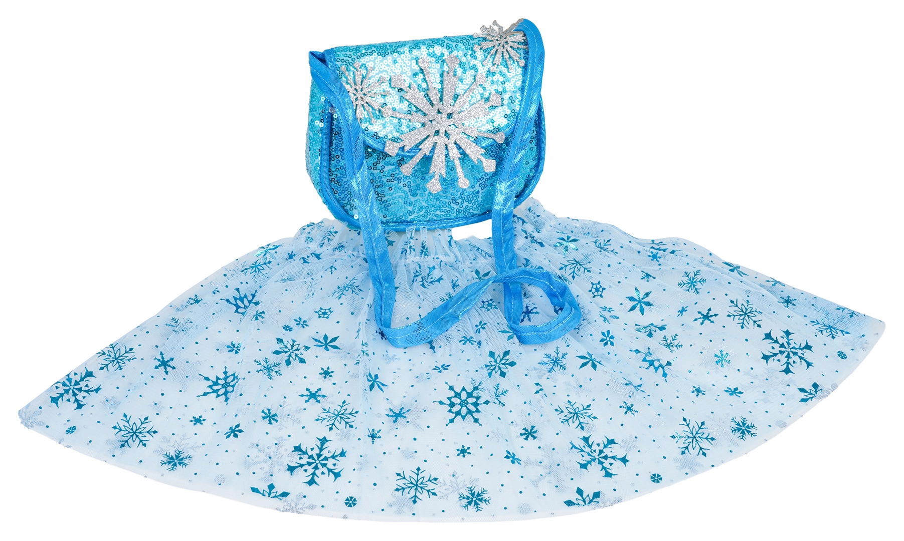 Det lette tylskørt med snefnug og den matchende glitrende taske skaber det perfekte iskolde outfit til enhver lille prinsesse.