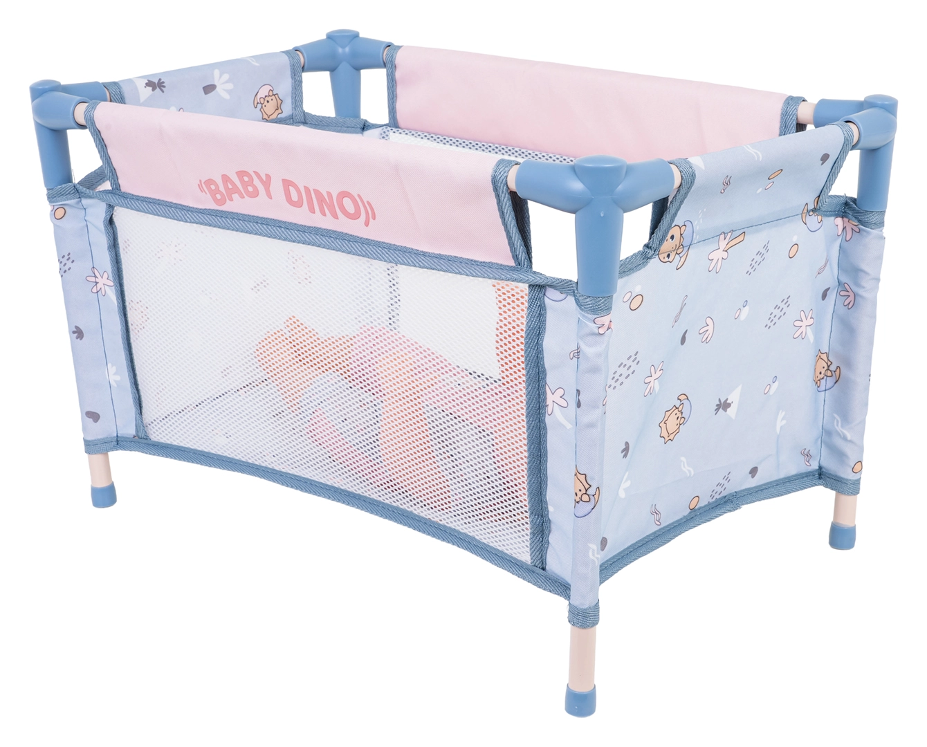 Praktisk kravlegård/rejseseng med solid konstruktion og net for bedre overblik og luftcirkulation. Matcher BABY DINO-temaet.