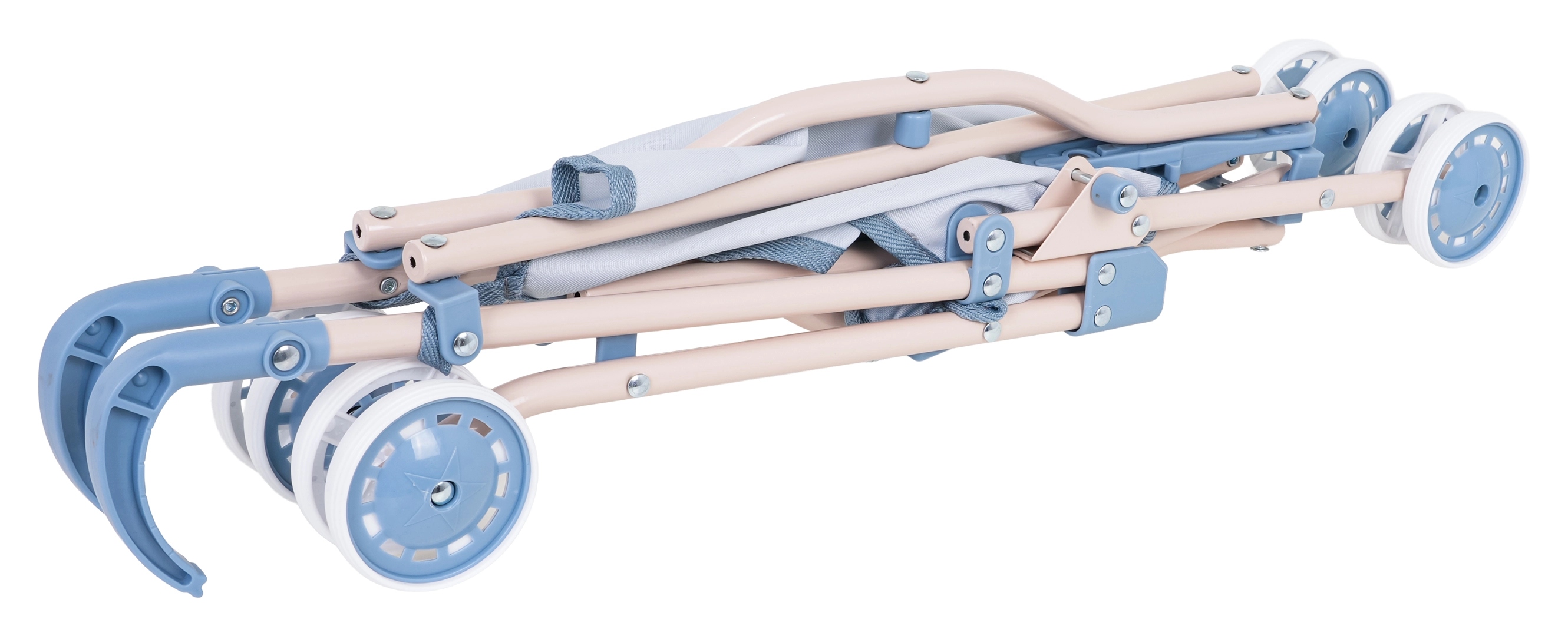 Let klapvogn med dobbelthjul og sikkerhedsrem, der nemt klappes sammen for at spare plads. Perfekt til leg både hjemme og på farten.