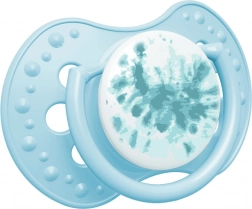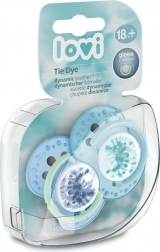 Den dynamiske LOVI Tie Dye-sut 18m+ efterligner naturlig amning. Det homogene silikonelag trækker sig sammen og udvider sig under sutten, spidsen er symmetrisk og fladtrykt for korrekt tungemotorik og naturlig lukning af munden. Det lette, ergonomiske skjold med ventilationshuller hjælper med at forebygge hudirritation, og udskæringen under næsen gør fri vejrtrækning lettere.
