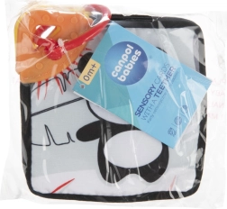 De bløde sensoriske kort med bidering CANPOL babies BabiesBoo understøtter sanseudviklingen fra fødslen. Takket være kontrastfyldte sort-hvide mønstre og knitrende elementer stimuleres både syn og hørelse, det teksturerede bidelegetøj lindrer ved tandfrembrud, og den praktiske ring gør det muligt at fastgøre dem til barnevogn eller autostol.