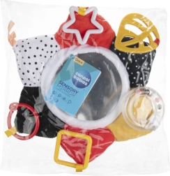 Det centrale sikre spejl fanger barnets opmærksomhed og fremmer koncentration, mens de stærke kontrastfarver stimulerer synet fra de første dage.