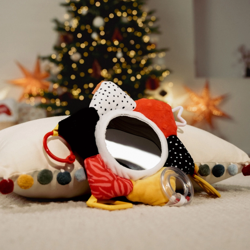 BabiesBoo sanse-spejlet er designet til naturlig udforskning fra de allerførste dage. Kontrastmønstre, varierede teksturer og blide lydstimuli motiverer barnet til at gribe, klemme, kigge og lytte. De bløde materialer er behagelige at røre ved og sikre til daglig leg hjemme og på farten.
