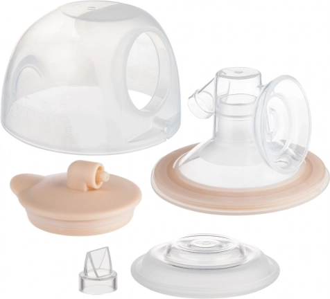 Takket være det lukkede system med silikonemembran og kontraventil sikres korrekt mælkeflow uden tilbagestrømning ind i pumpens hus. Materialer uden BPA er sikre til direkte kontakt med fødevarer, er lette at skille ad, rengøre og sterilisere gentagne gange.