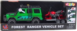Sjovt sæt til små eventyrere: en terrængående bil med aftagelig trailer og motorcykel bringer realistisk leg både inde og ude. Tilbyder lys- og lydeffekter, åbne døre og robust konstruktion af kvalitetsplast. Den grøn-sort offroader med bjerggrafik, robuste hjul og funktionel læsserampe på traileren er ideel til kreative scenarier og udvikling af finmotorik.