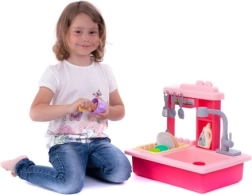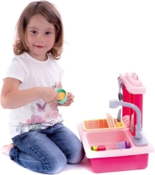 Nyd sjov opvaskning med denne børnevask i lyserød, som indeholder en funktionel hane, en vandbeholder og en aftagelig drypbakke.