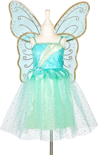 Nederdelen består af en satinbund dækket af et lag lysturkis tyl strøet med gyldne prikker, der glitrer smukt ved hvert skridt. Sættet inkluderer også transparente turkise vinger med gyldne mønstre og kanter, som takket være elastiske bånd er nemme og behagelige at tage på – og de kan også bæres separat.