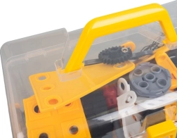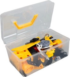 Opdag et kreativt byggesæt med 100 dele, der lader børn samle køretøjer og funktionsdygtige mekanismer ved hjælp af skruer, hjul og tandhjul. Det praktiske bærbare boks-sæt med håndtag holder alt samlet og gør det nemt at rydde op og tage med på farten. En fantastisk pædagogisk gave til udvikling af finmotorik, logik og teknisk tænkning.